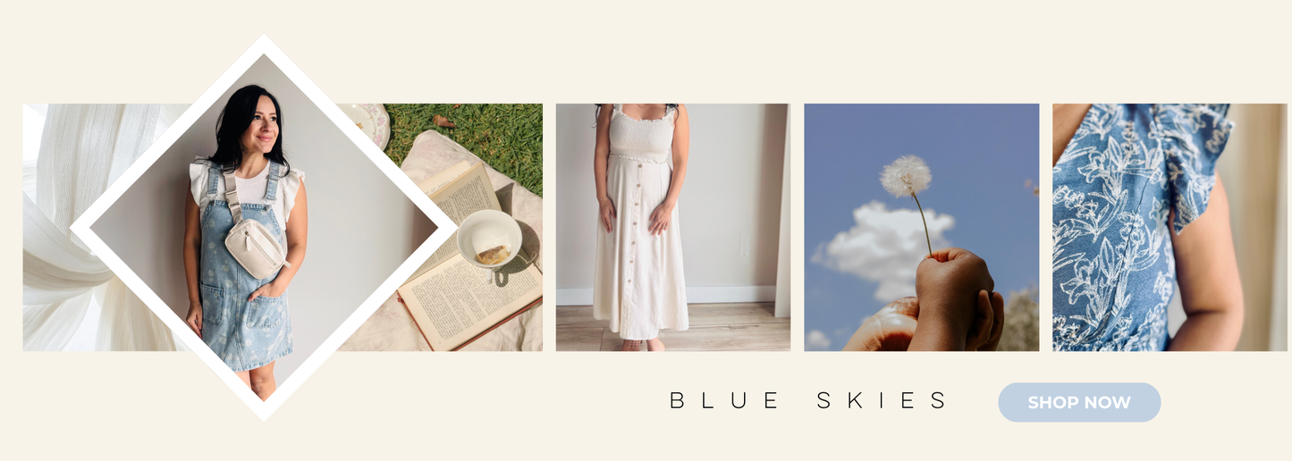 Blue Skies is about fresh starts and lighter days ahead — easy layers, effortless pieces, and that feeling when everything finally feels a little brighter.