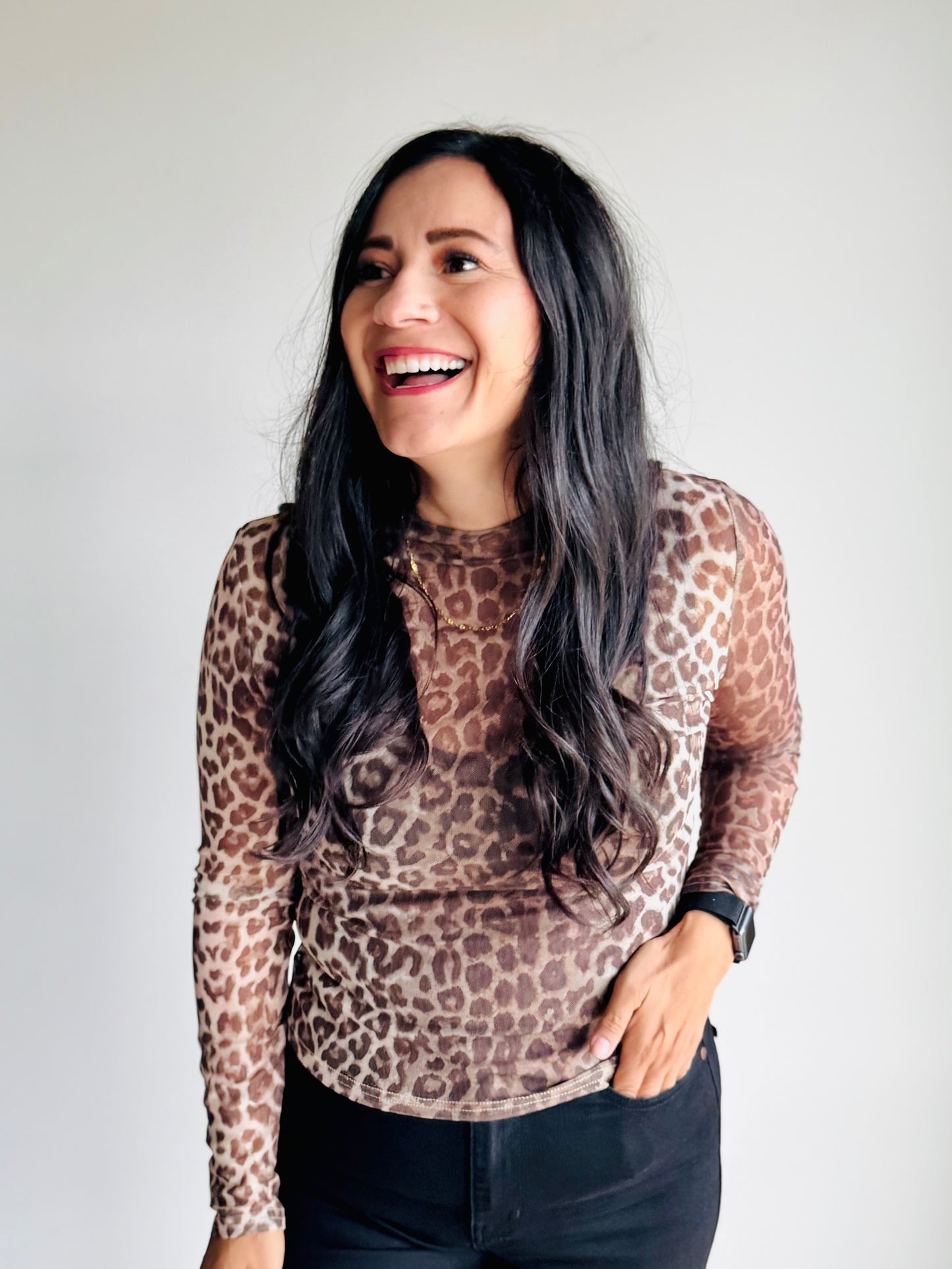 Regular price $15.00The Tasha Top combines edgy style with breathable comfort. Its long sleeves and mock neck offer a flattering silhouette, while the lightweight mesh fabric ensures all-day ease. Featuring a trendy animal print, this top adds a fierce touch to any outfit, perfect for layering or standing out on its own.