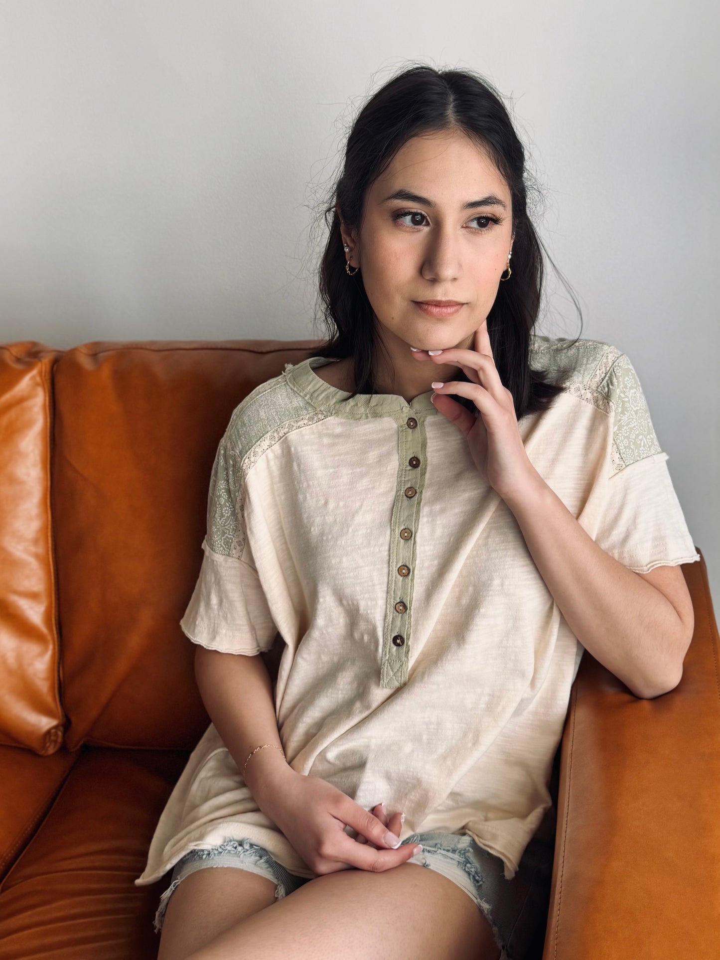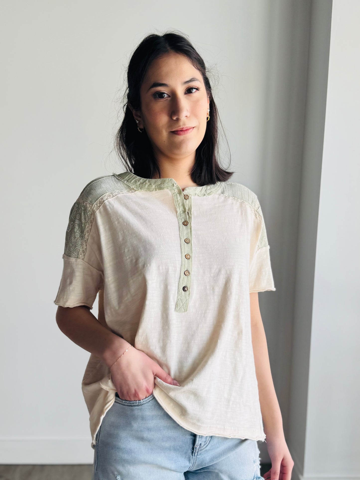 Adeline Contrast Shoulder Henley Top