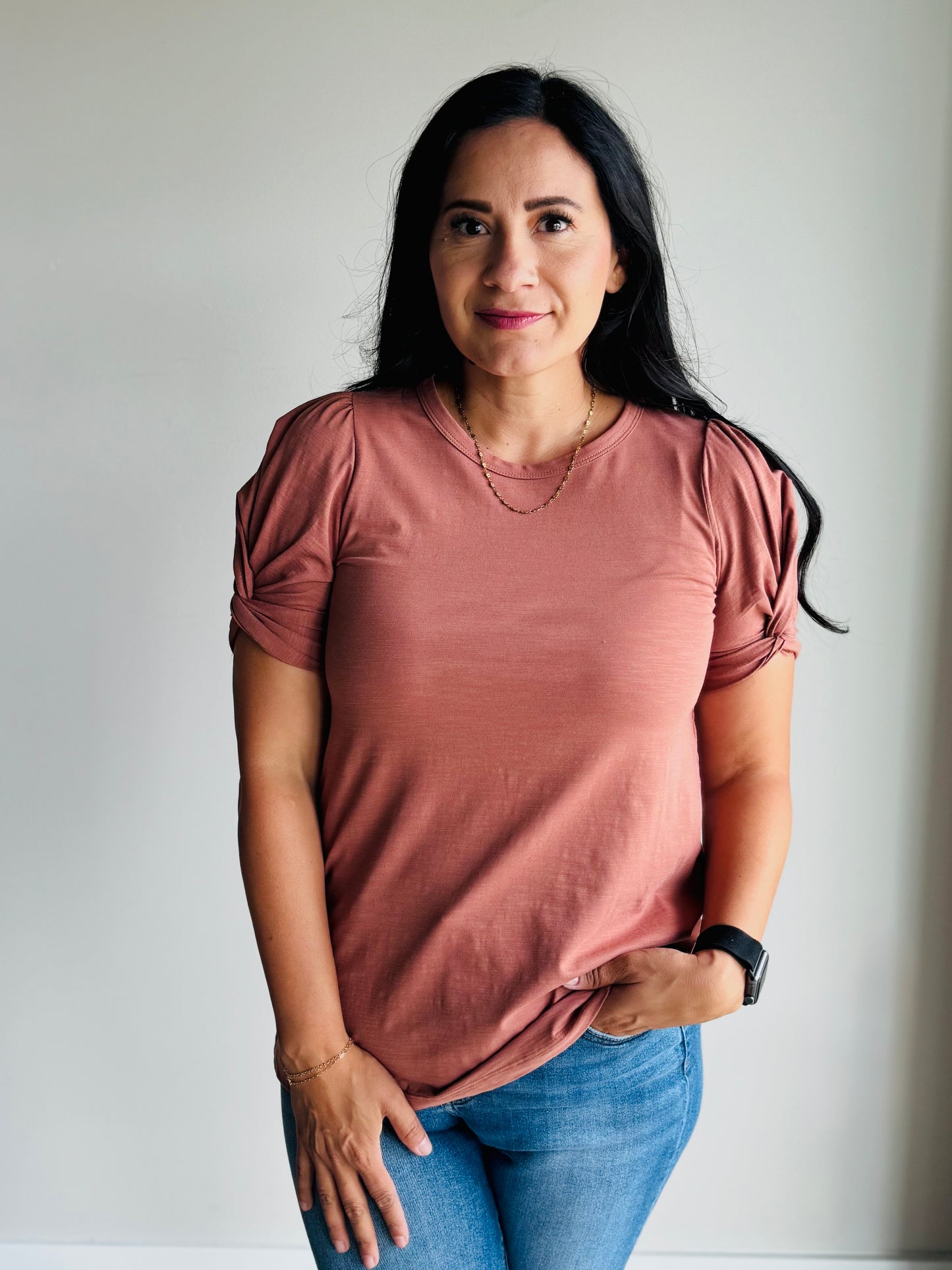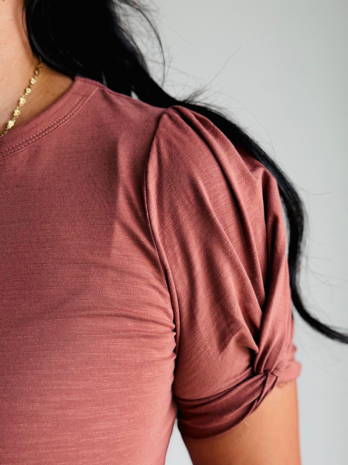 Jainey Twisted Puff Sleeve Top - Clay