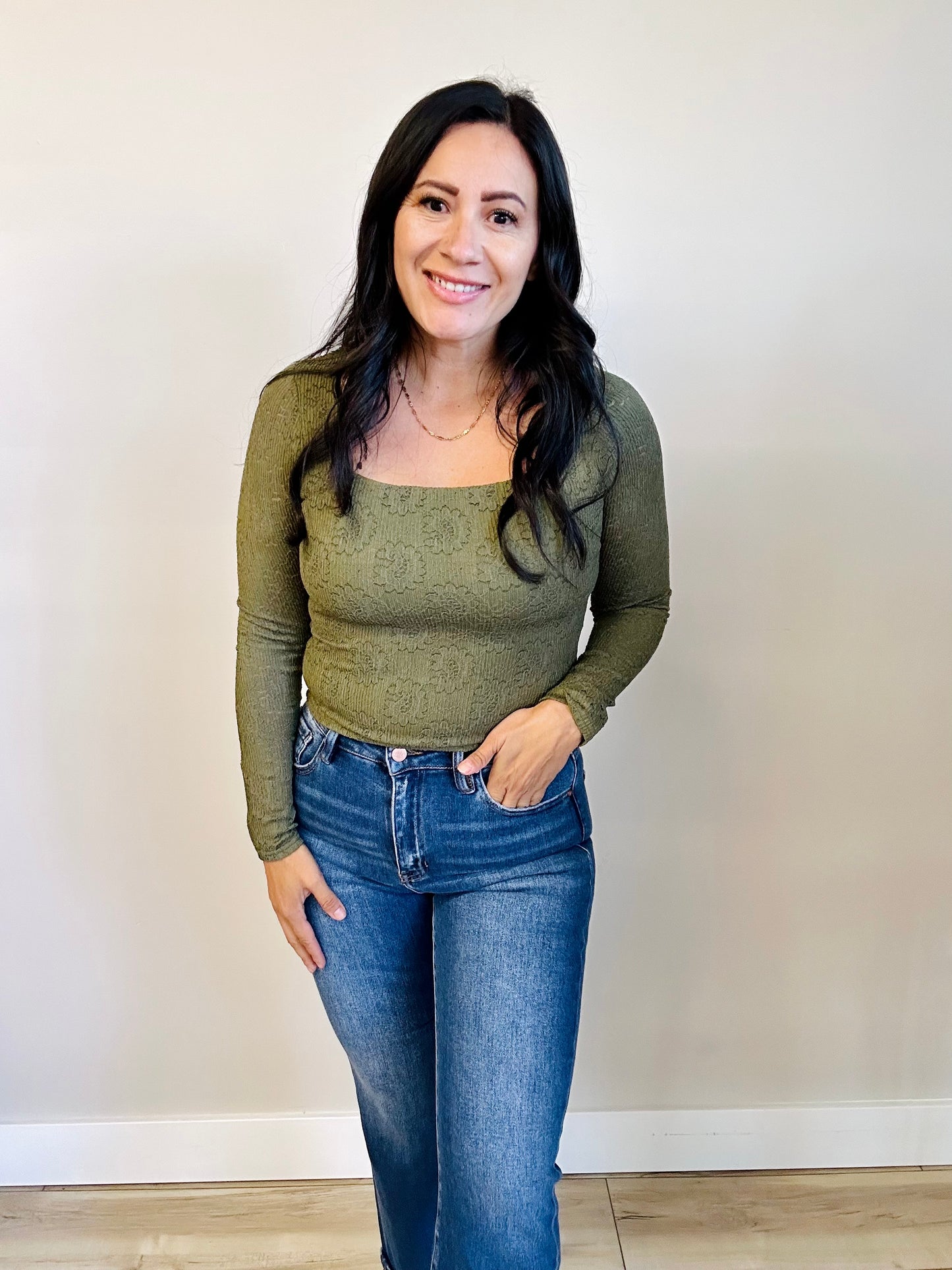 Jill Long Sleeve Textured Bodysuit