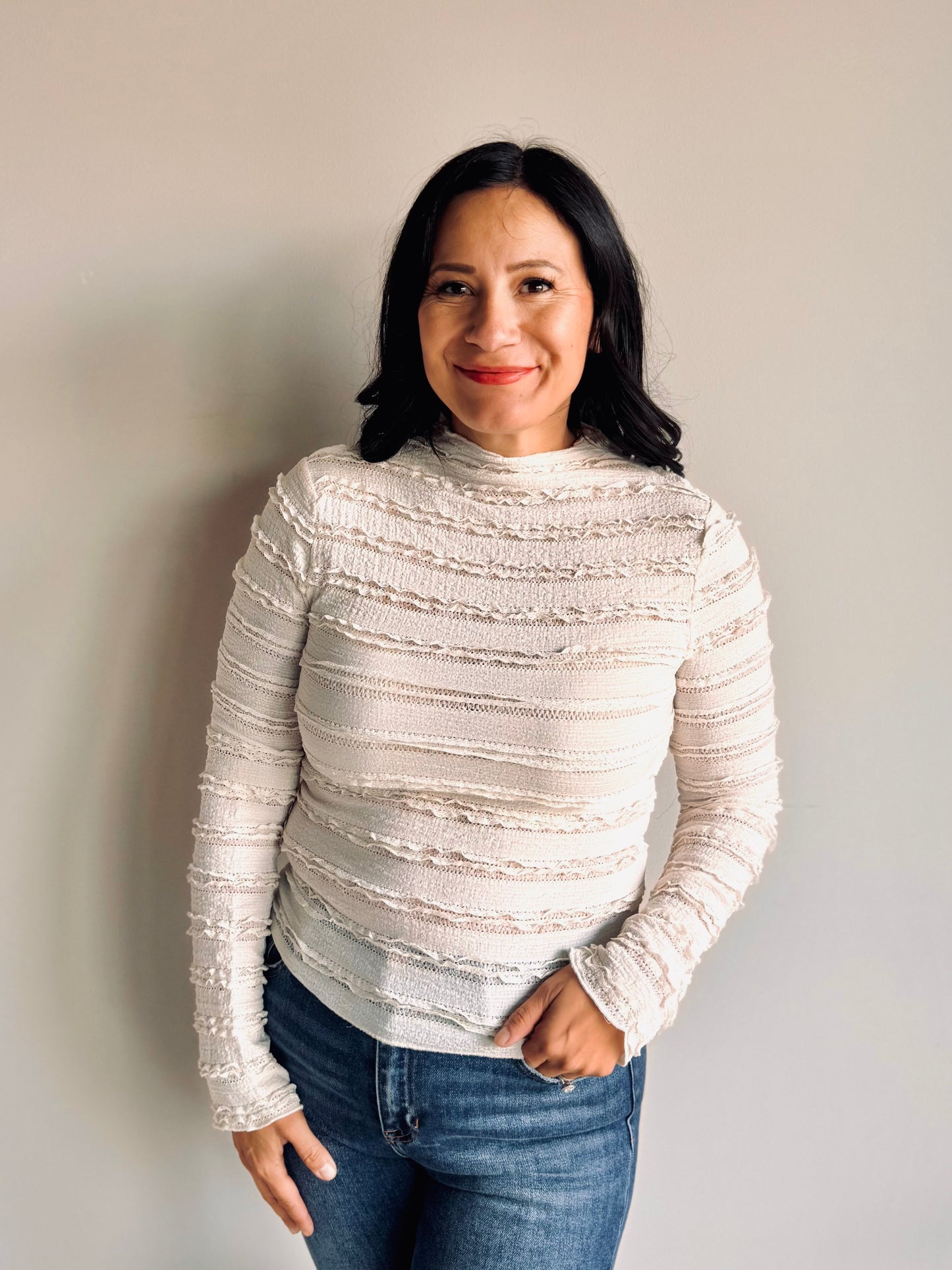 Mia Mock Neck Ruffled Top