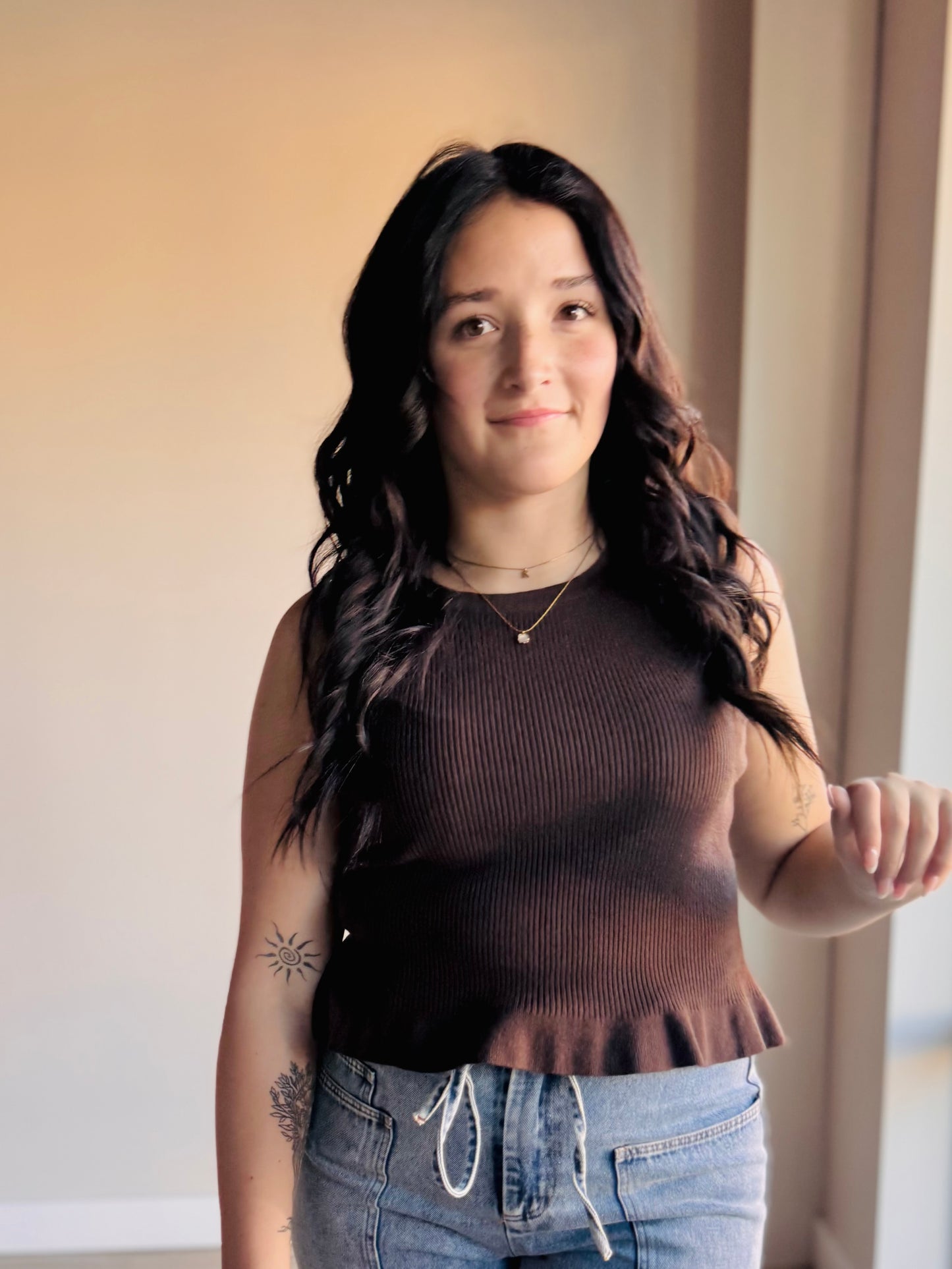 Kaycie Peplum Tank Top - Espresso
