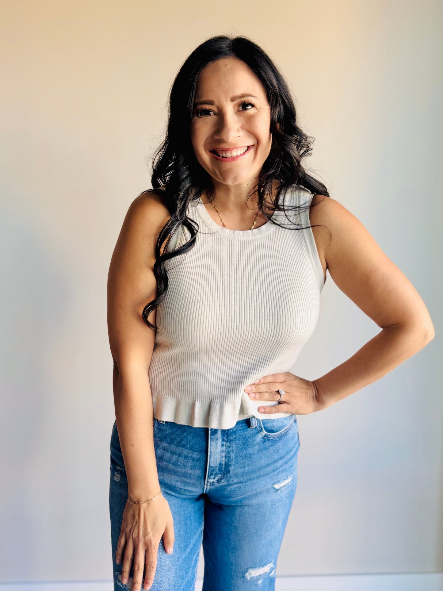 Abigail Ribbed Square Neck Top - Ivory
