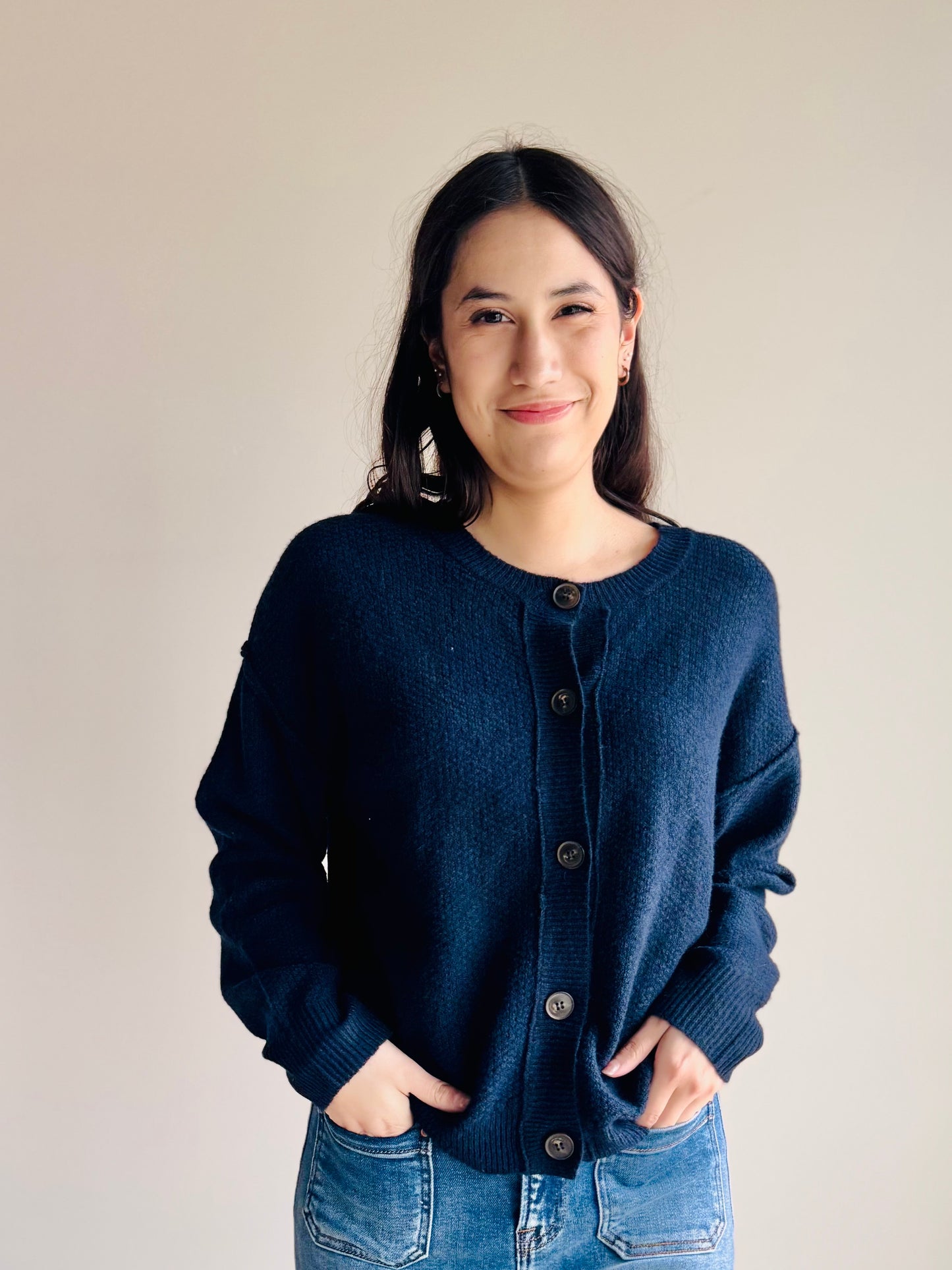 Callie Button Down Knit Cardigan - Navy,