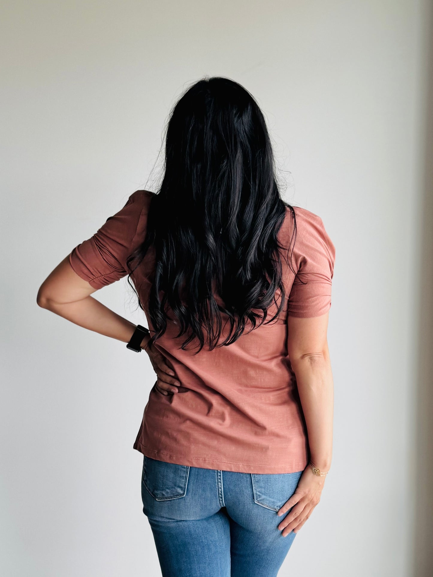 Regular price $20.00The round neckline and twisted puff sleeves add a unique and sophisticated twist to this classic short sleeve tee. With its relaxed fit, the Jainey top is both comfortable and stylish.