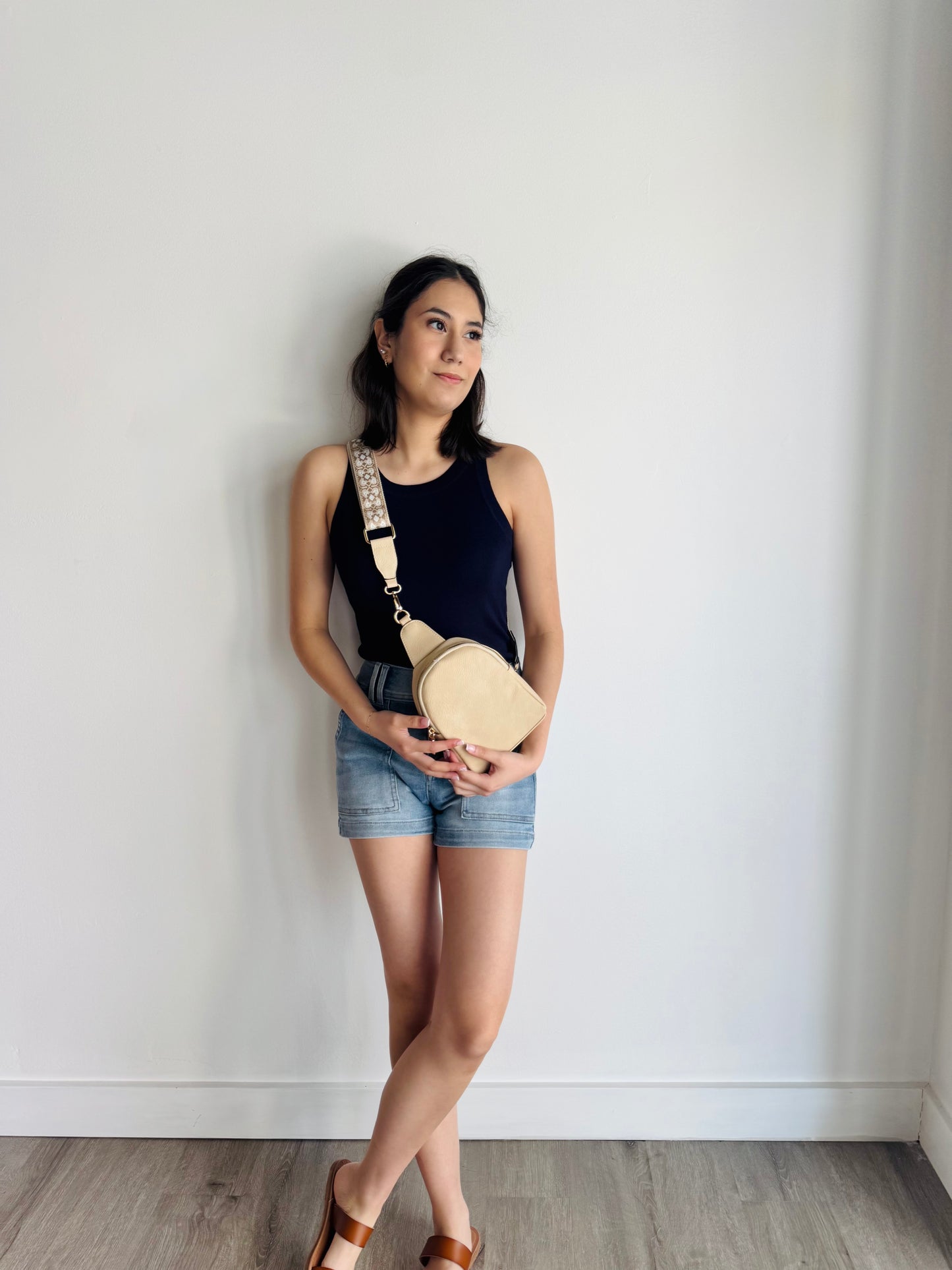 Add Allie Thick Band Crop Tank Top - Black to the cart