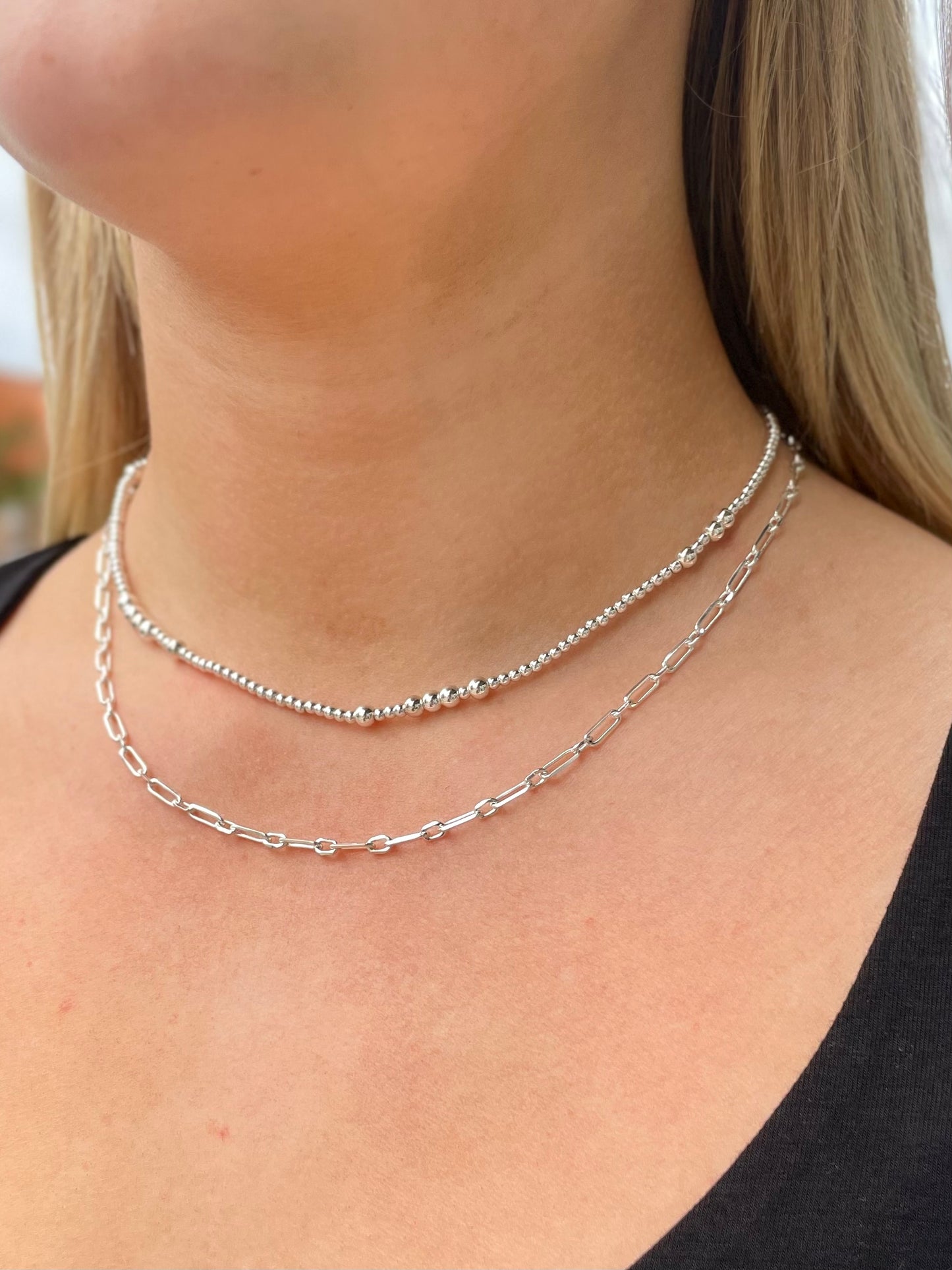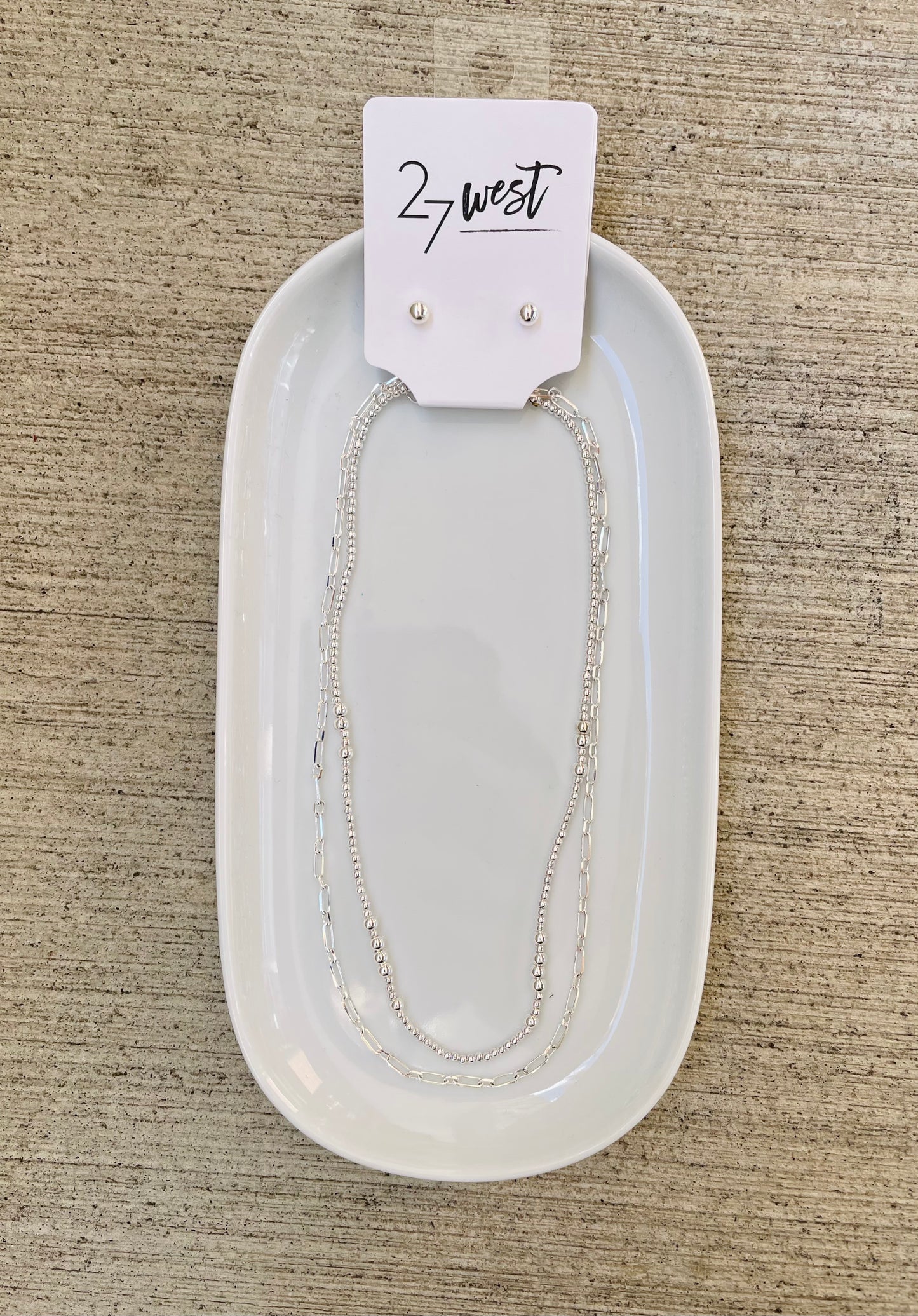 Add Double Layered Beaded and Chain Necklace - Silver to the cart