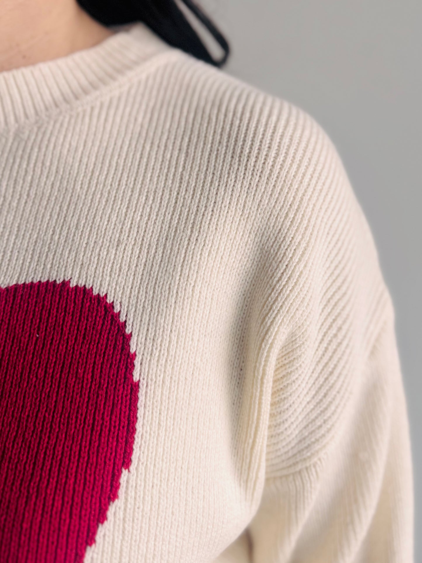 This cozy knit pullover features a charming heart jacquard pattern. It has a relaxed fit, drop shoulders, long sleeves, and crew neck for effortless everyday style. Layer it or wear solo.