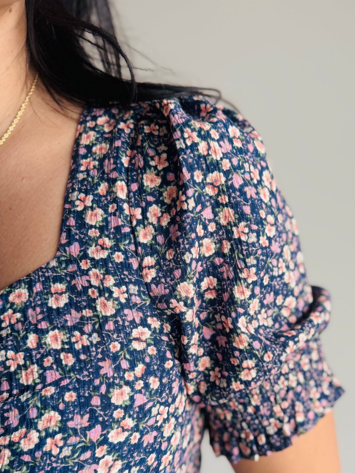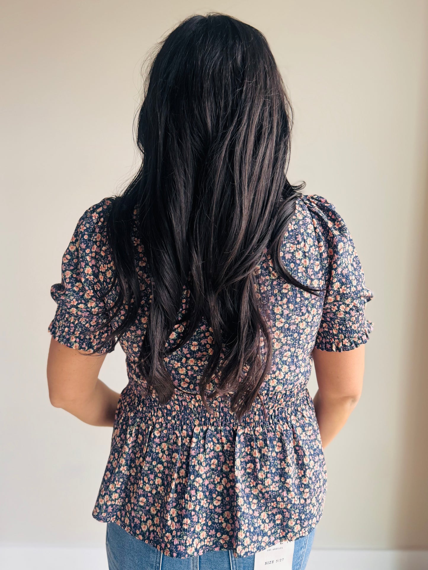 Elevate your everyday wardrobe with this charming floral blouse, designed to flatter and inspire confidence. The sweetheart neckline frames your face beautifully while the delicate ditsy print brings a fresh, on-trend appeal. A smocked back waist hugs your curves in all the right ways, offering both comfort and style, while the soft peplum hem adds movement and dimension.