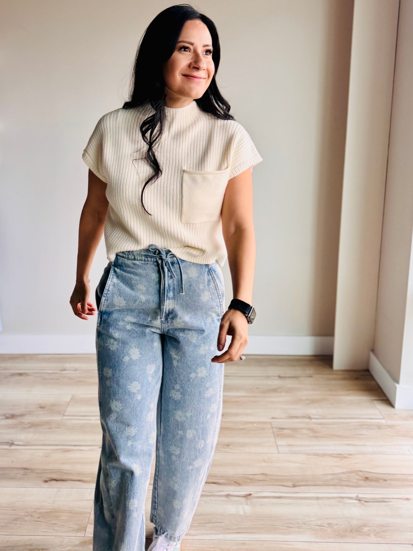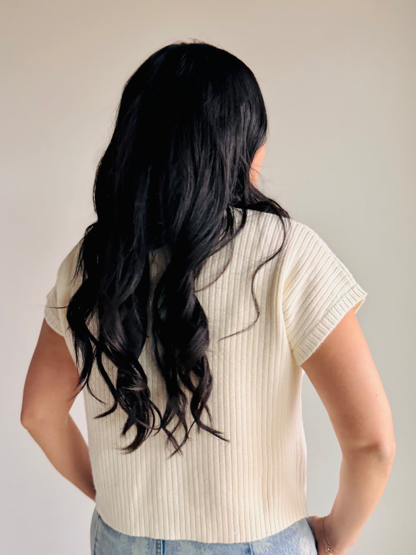 This soft sweater knit pullover has a mock neckline, extended shoulders, and short sleeves. It features a lightweight, unlined design that works for any occasion.