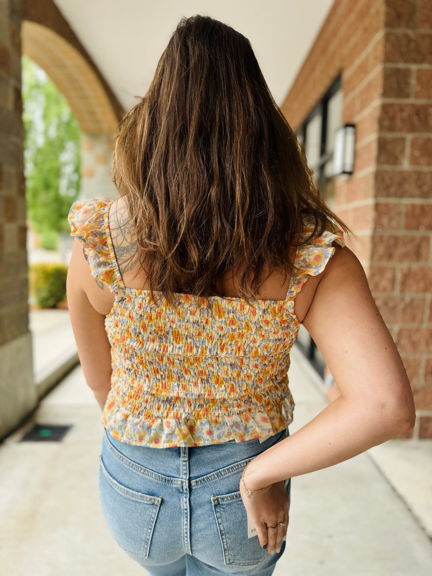 Regular price $12.00This beautiful floral-print top features a flattering sweetheart neckline and a ruched drawstring bodice for a fitted silhouette. With smocked details, ruffle shoulder straps, and a cropped length, this top will add a touch of femininity to any outfit.