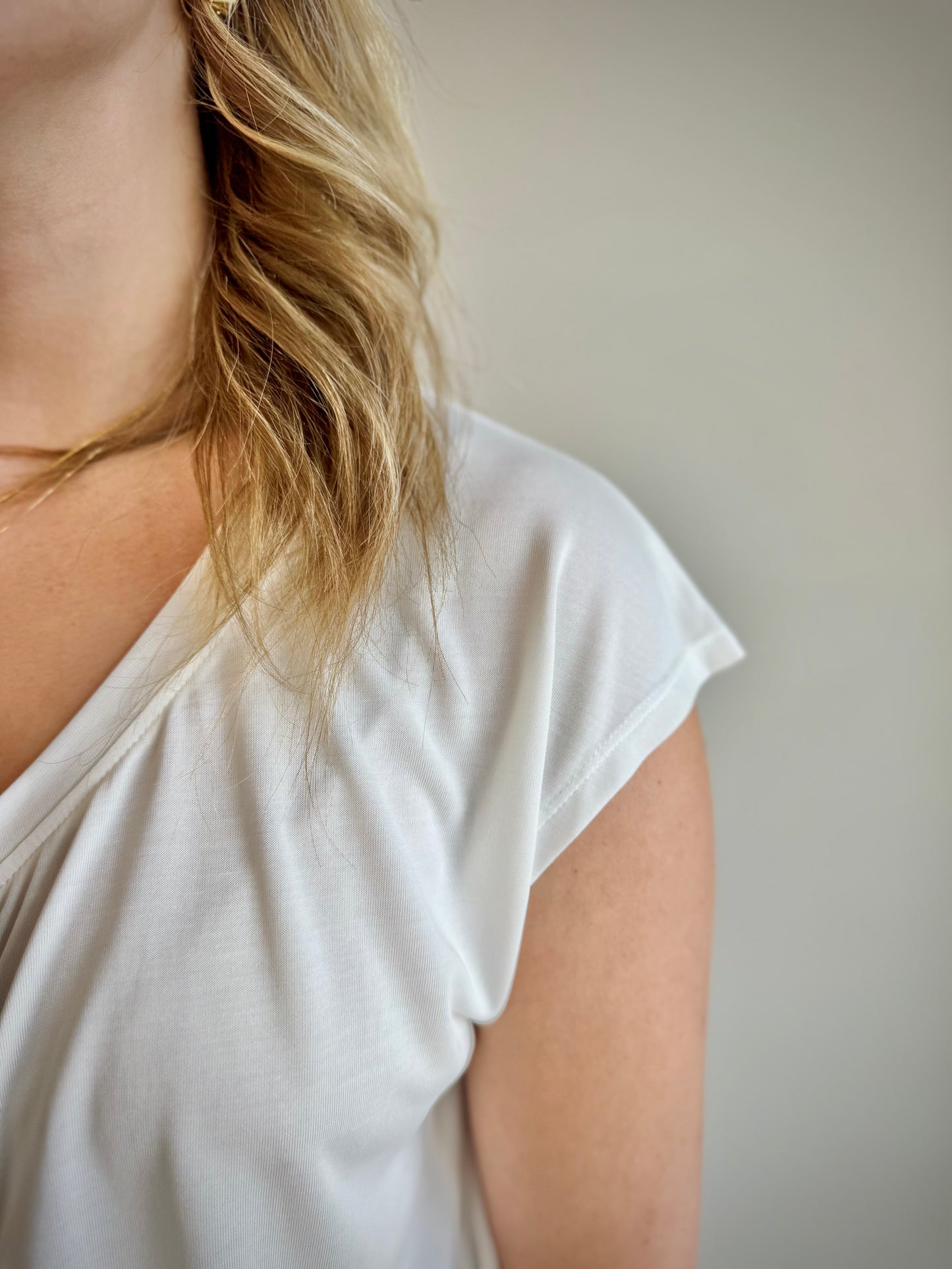 Regular price $25.90The adjustable ruched front with drawstring lets you customize your fit and style, while cap sleeves offer the perfect balance of coverage and femininity. The flattering V-neckline draws attention upward, creating a slimming silhouette that complements any figure. This versatile piece transitions effortlessly from day to night.
