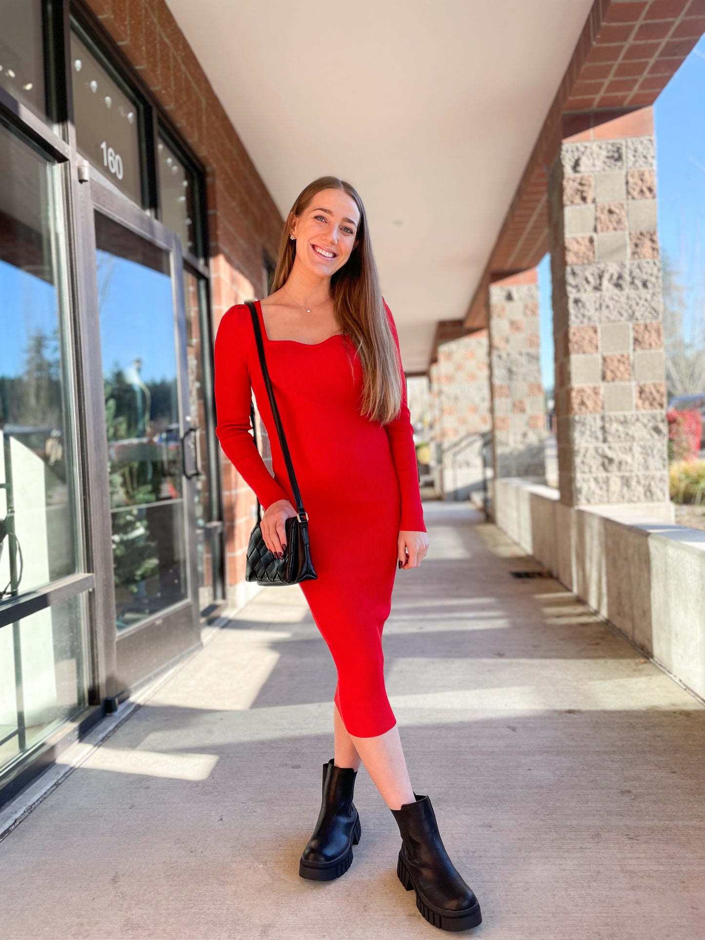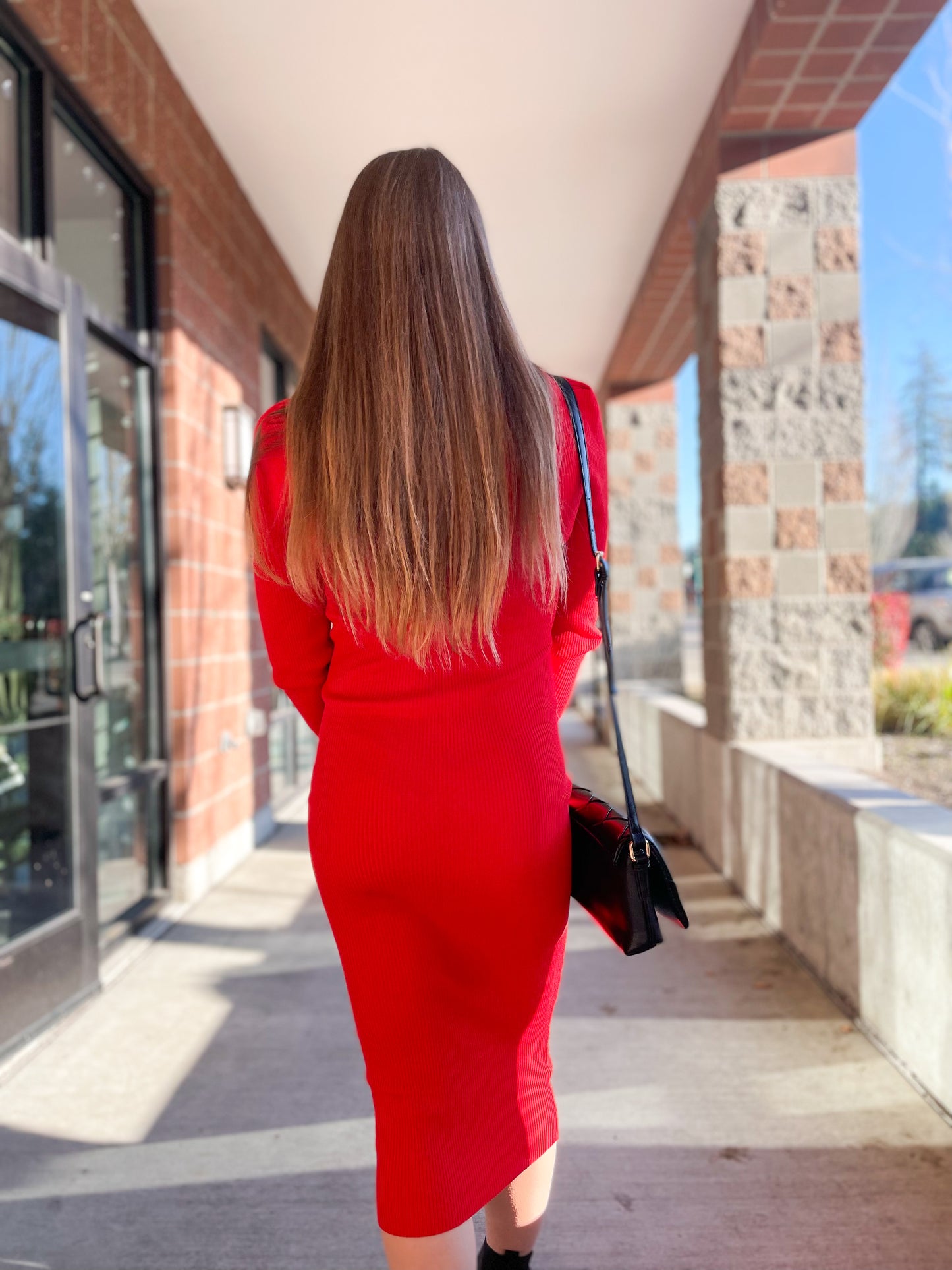 Regular price $18.40This soft and stylish Alice Sweetheart Midi Dress is perfect for any occasion. The knit fabric is designed to flatter your curves and the sweetheart neck and long sculpted sleeves add a touch of glamour.