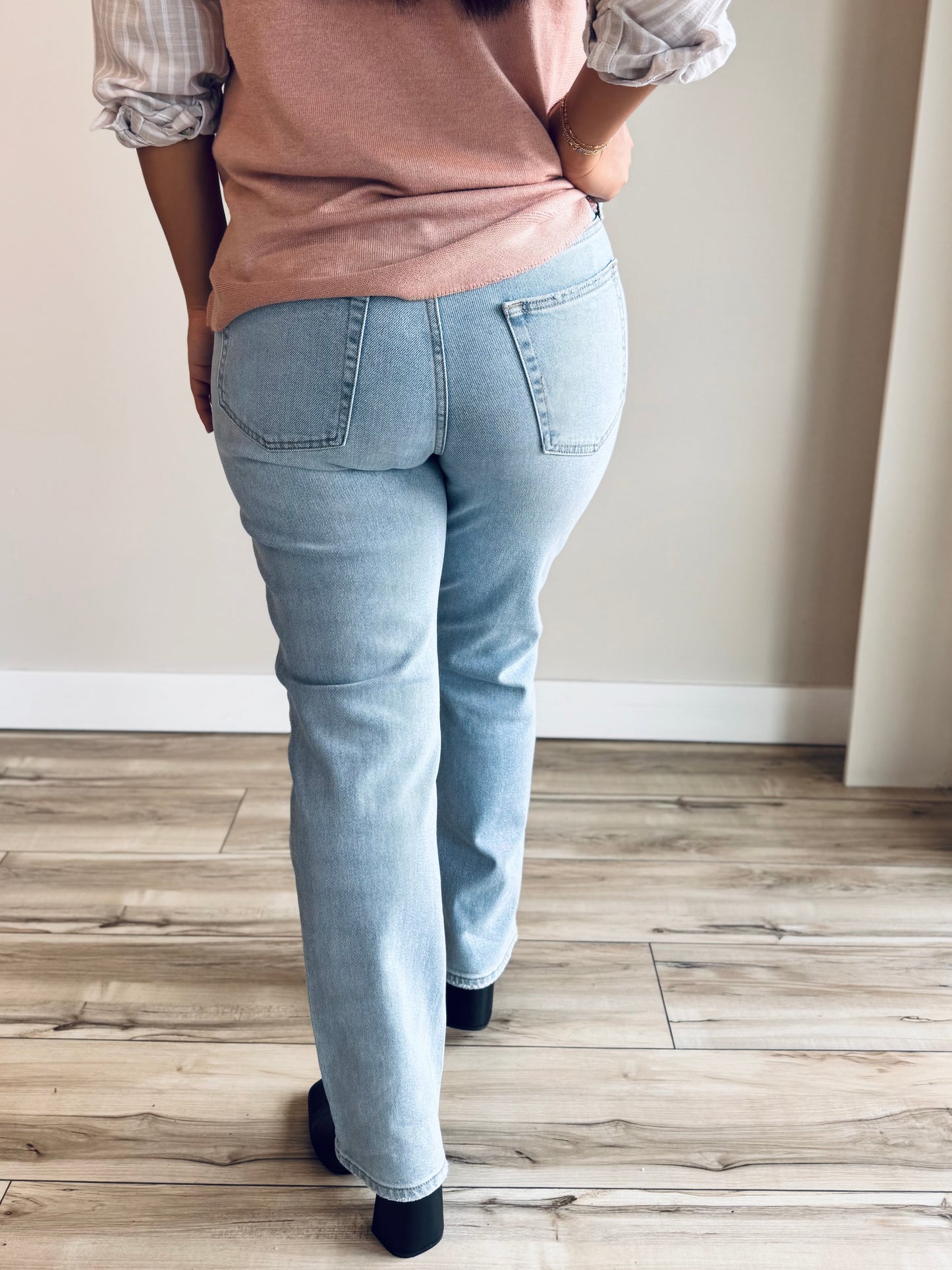 Regular price $29.00This stylish pair of jeans is perfect for everyday wear! The clean and versatile denim can easily be dressed up or down, and the stretch fabric will keep you comfortable all day long. The straight leg fit will give you a flattering silhouette and make you feel confident no matter where you go.