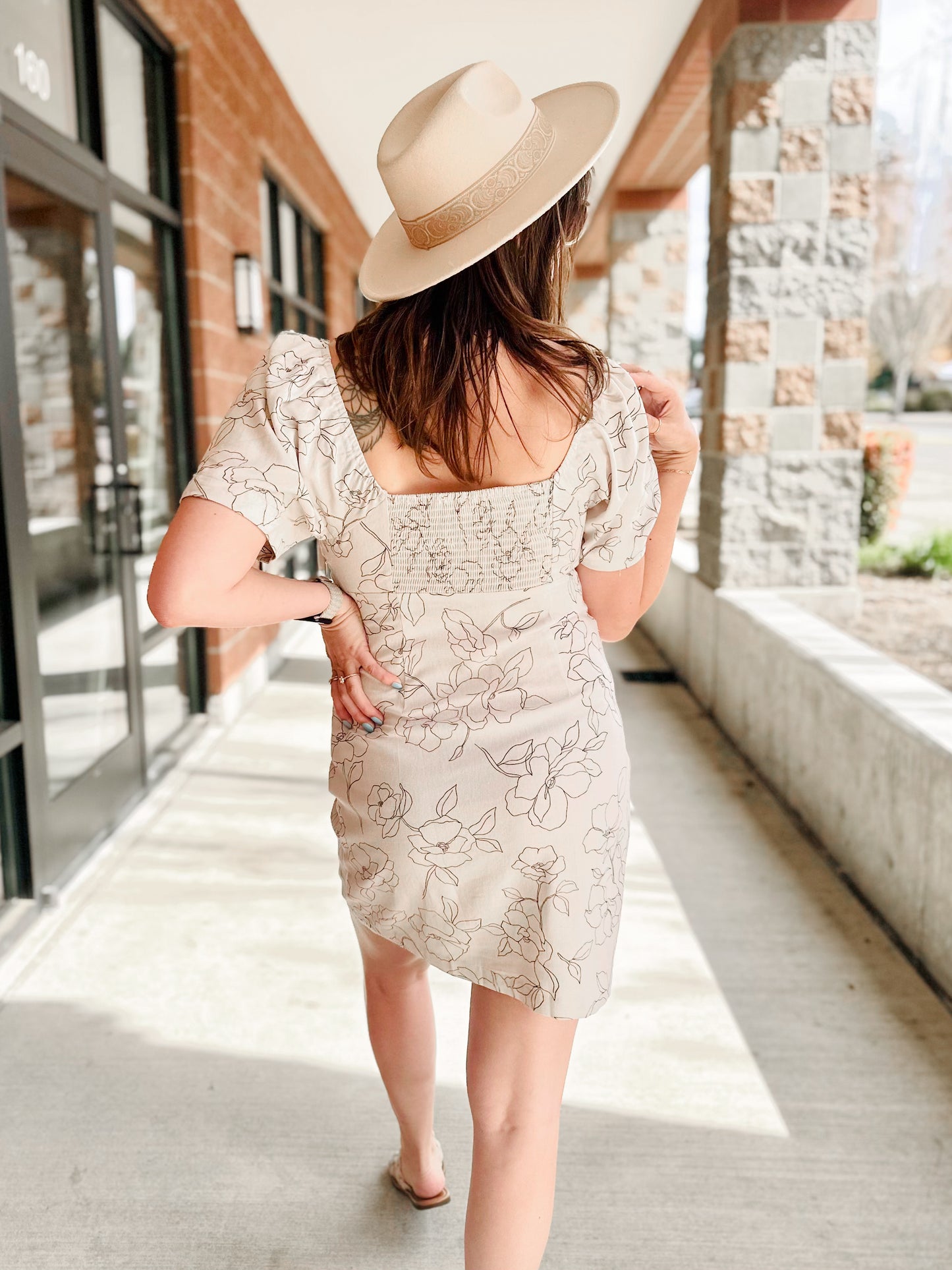 Regular price $28.00This dress is a must-have for the upcoming season. With a flattering sweetheart neckline, smocked back, and hidden side zipper, it's both stylish and comfortable. The short puff sleeves add a touch of femininity, and the delicate floral print is perfect for any occasion.