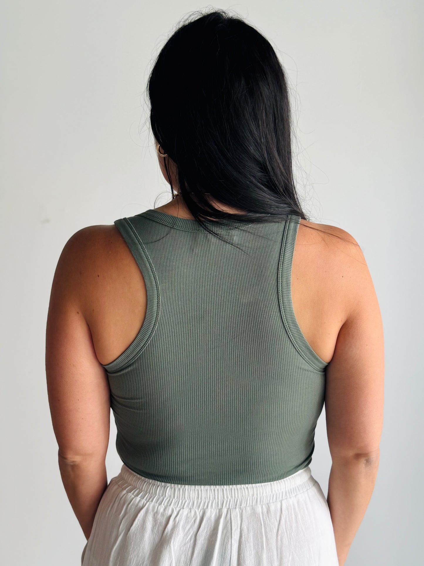 Regular price $12.60Comfort and style come together in our Demi Tank Top. With its ribbed texture and slightly cropped design, this tank top provides a relaxed and effortless look. The crewneck adds a touch of sophistication, while the washed look adds a trendy edge.