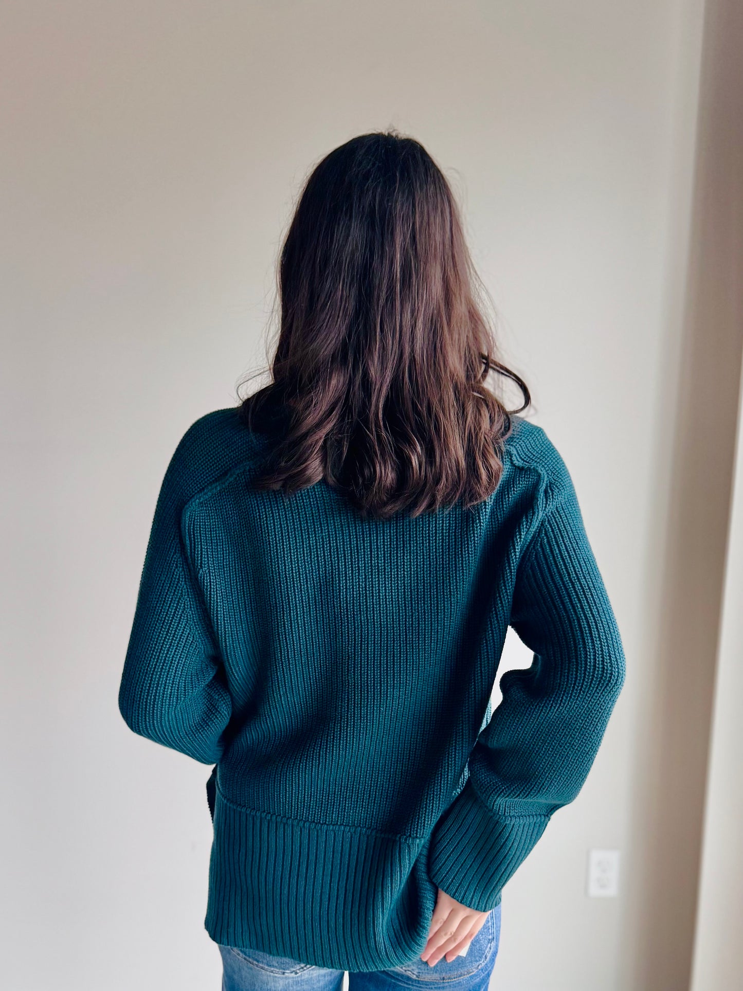 Experience unmatched comfort and effortless style with the Elle Sweater. Its soft, ribbed knit texture provides a cozy touch, while raglan sleeves and exposed seams add a modern, relaxed vibe. Deep side slits enhance mobility and lend a flattering silhouette, making it perfect for casual days out or inspiring creativity at the office.