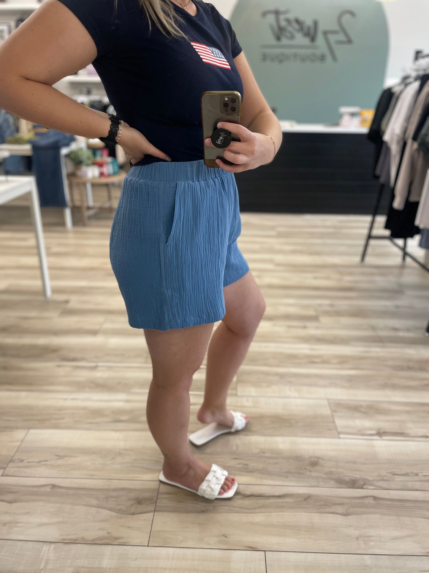 Elliot Elastic Waistband Shorts- Blue - 27 West
