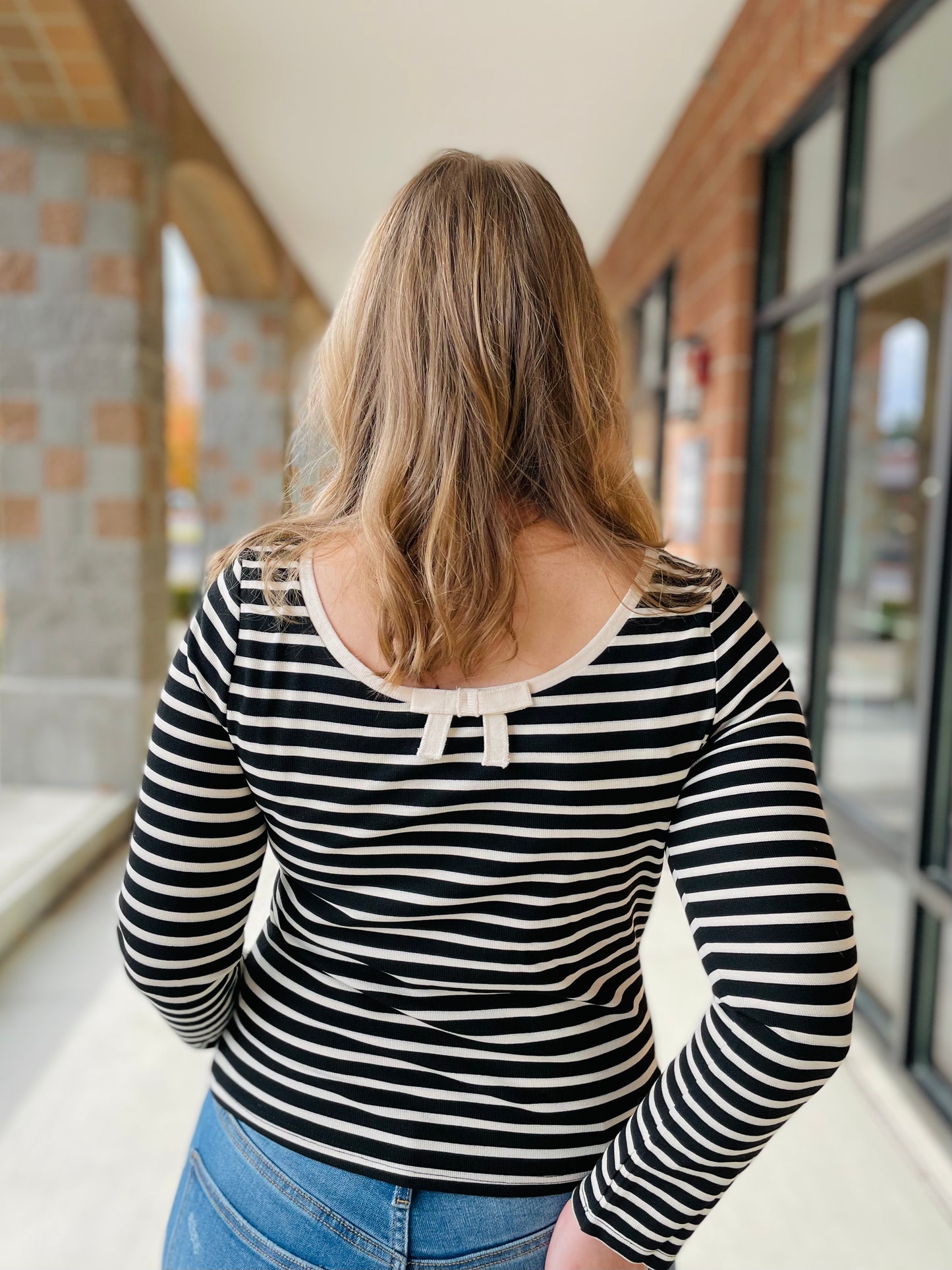 Regular price $19.80The wide boat neck and low back with mini bow detail make this top chic and modern with a fun twist. The long sleeves and fitted design provide a flattering silhouette. This top is a must-have for any fashion-forward individual looking for a stylish and versatile addition to their wardrobe.