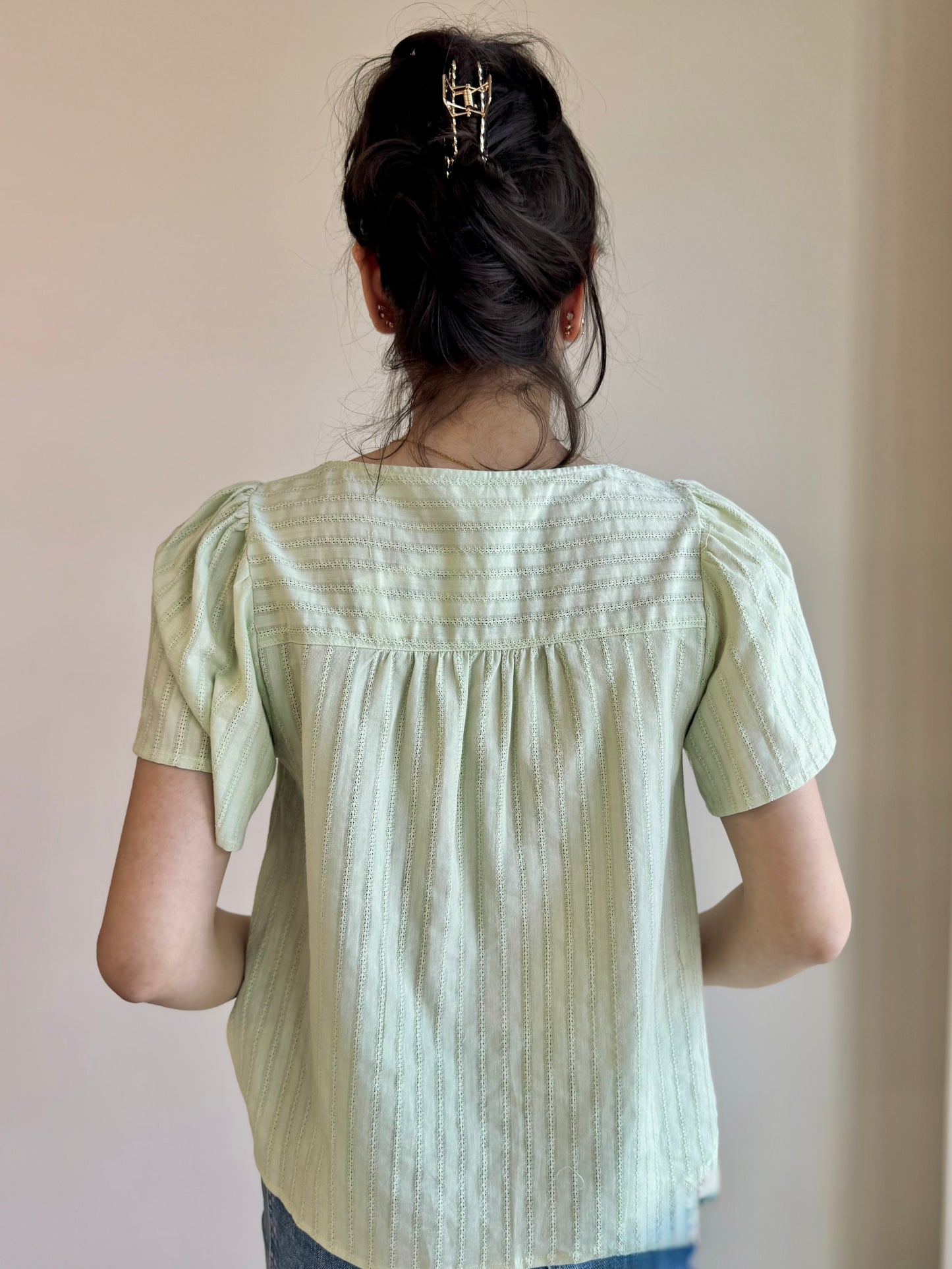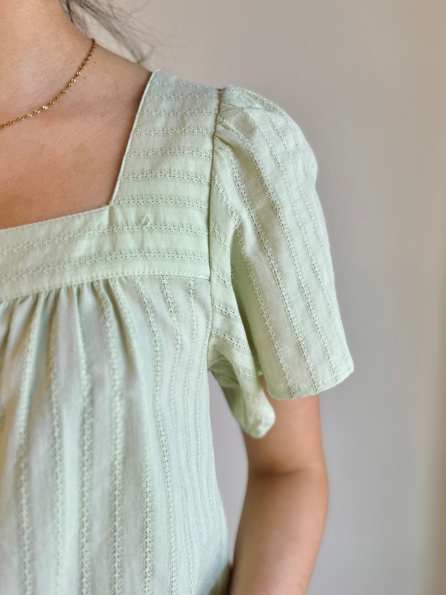 Regular price $28.70The sophisticated square neckline frames your décolletage beautifully, while the textured fabric adds dimension and visual interest. Practical button-down styling meets feminine flair with flattering flared short-sleeves, creating the perfect balance of comfort and style for any occasion.