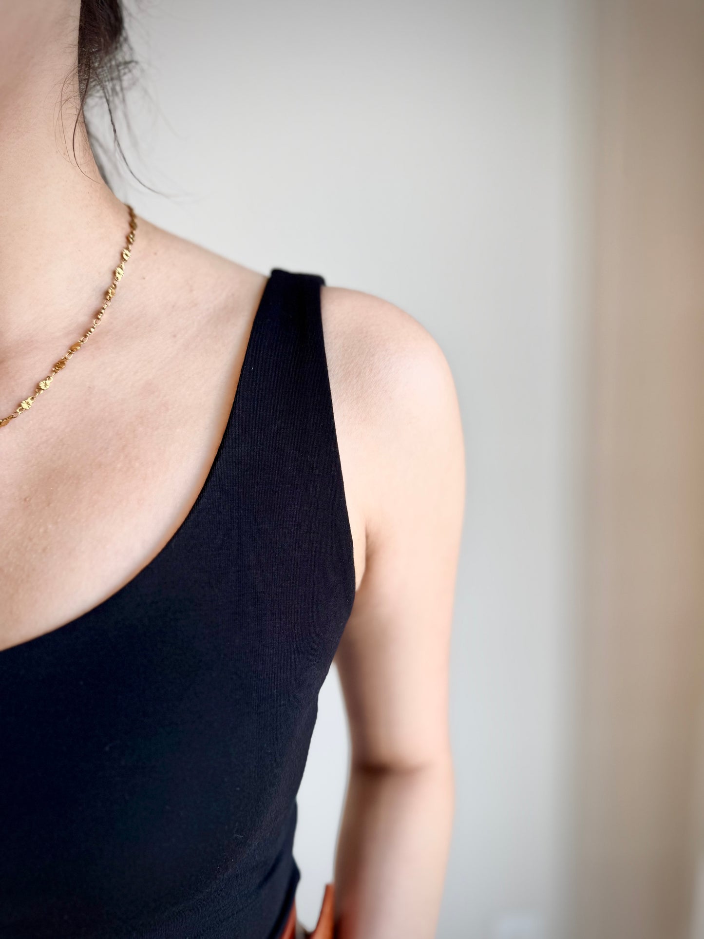 Regular price $16.80Crafted from a soft, stretchy spandex blend, this double-lined jersey tank offers a fitted silhouette that moves with you. Its scoop neck and back design add a flattering touch, making it a versatile essential for layering or wearing alone.