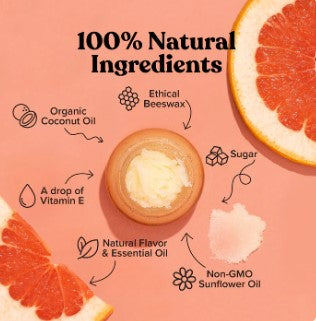 Sugar (Sucrose), Cocos Nucifera (Coconut) Oil, Cera Alba (Beeswax), Helianthus Annuus (Sunflower) Oil, Citrus Grandis (Grapefruit) Oil, Citrus Aurantium Dulcis (Sweet Orange) Oil, Vanilla Planifolia Extract, Tocopherol (Vitamin E)
