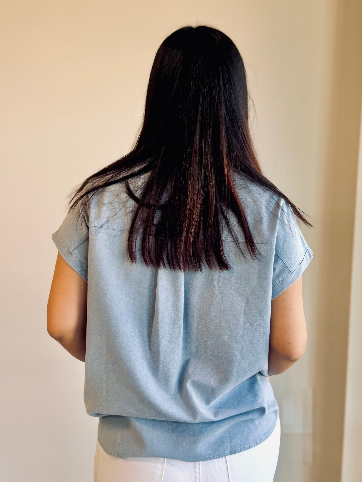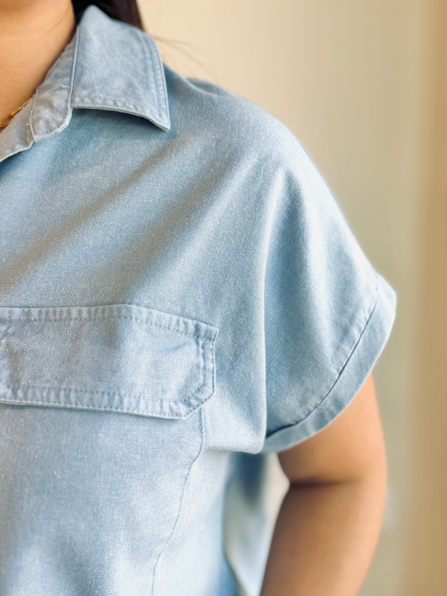 This top features a relaxed drop shoulder and stylish flap sleeves for a modern, effortless look. The classic button-up front and crisp collar add a polished touch, making it perfect for both casual outings and office wear. Comfortable and chic, it’s a versatile piece that enhances any outfit with ease.