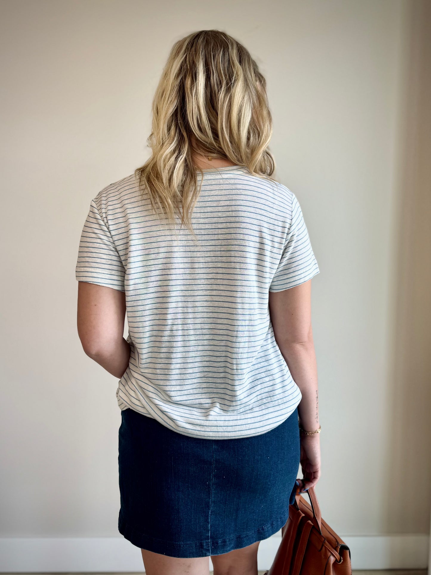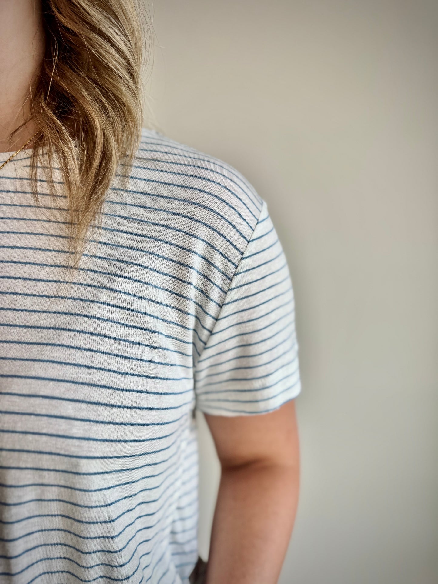 This lightweight, relaxed-fit tee features classic stripes and a comfortable round neck. Small side slits add subtle detail, while the basic fit ensures everyday ease and versatility. Perfect for casual wear, it combines comfort and timeless design for your wardrobe essentials.