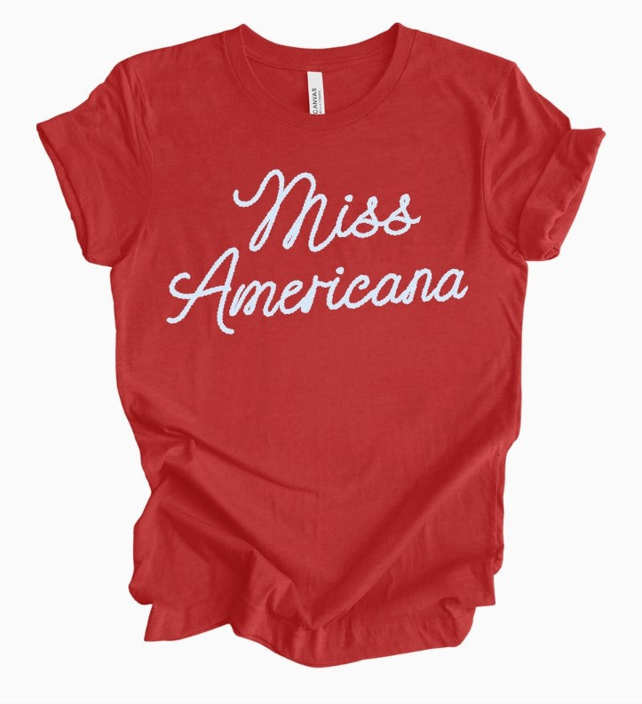 Regular price $18.00The Miss Americana Shirt does not come with a heartbreak prince (hopefully). Rep this Taylor Swift inspired shirt on the Fourth of July or year-round. It's short sleeves and relaxed fit give you all day comfort.