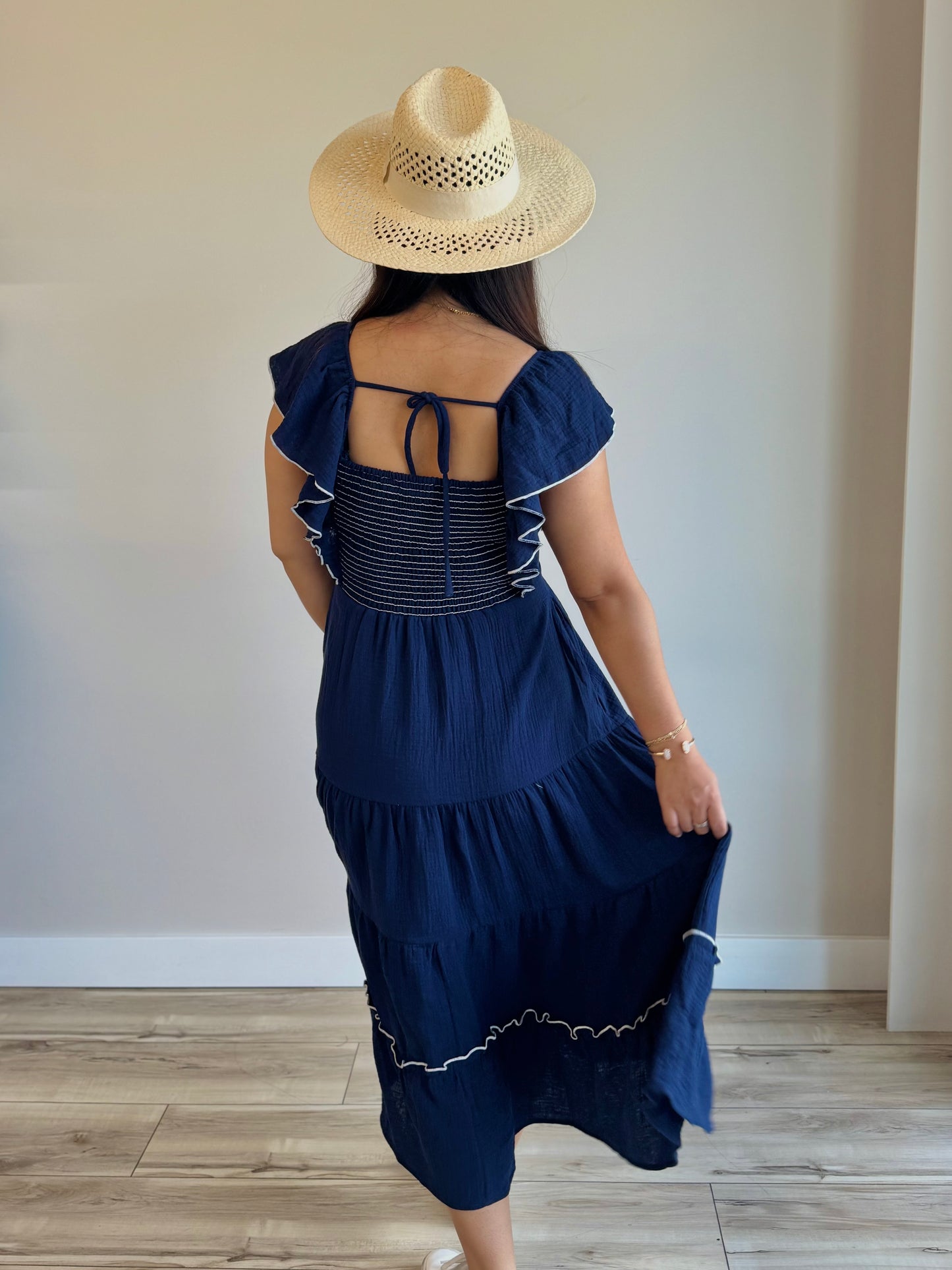 Regular price $43.40Featuring a flattering square neckline and delicate ruffle sleeves, this dress combines feminine charm with comfortable smocked detailing for a perfect fit. Its midi length offers versatile elegance, ideal for both casual outings and special occasions.