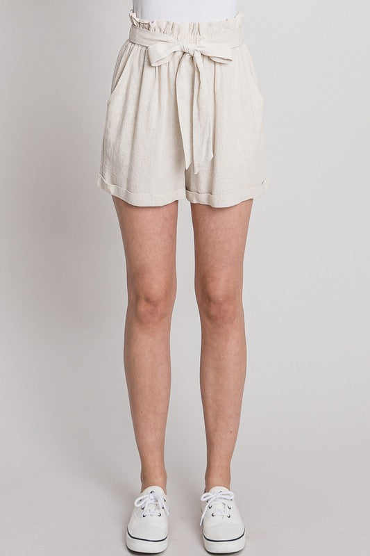Regular price $15.00The Nicole shorts are the perfect blend of style and comfort! Made from soft and breathable linen, these paperbag shorts feature an elastic waist with a cute tie for a flattering fit.