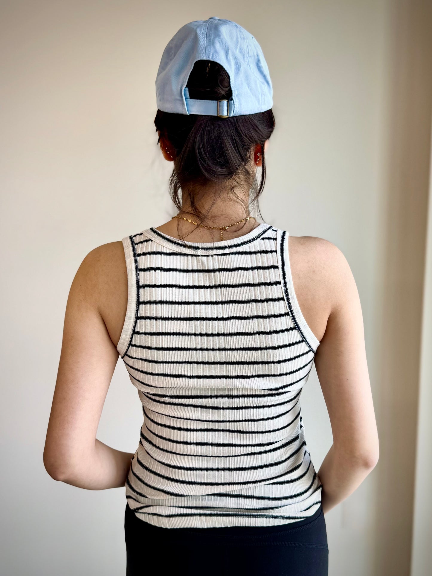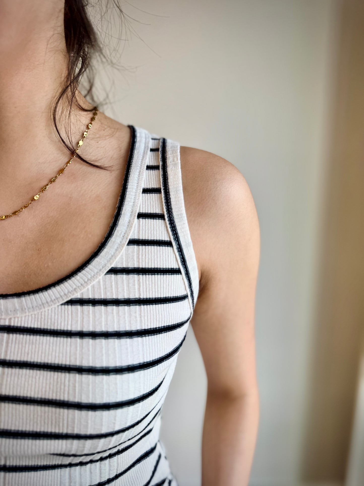 Regular price $19.60Crafted from soft ribbed knit, this sleeveless tank features a flattering scoop neckline and racerback design with wide straps for added support. Its classic striped pattern adds a preppy, cute touch perfect for everyday wear. Whether layered or worn alone, this versatile tank is a must-have for effortless, polished looks.