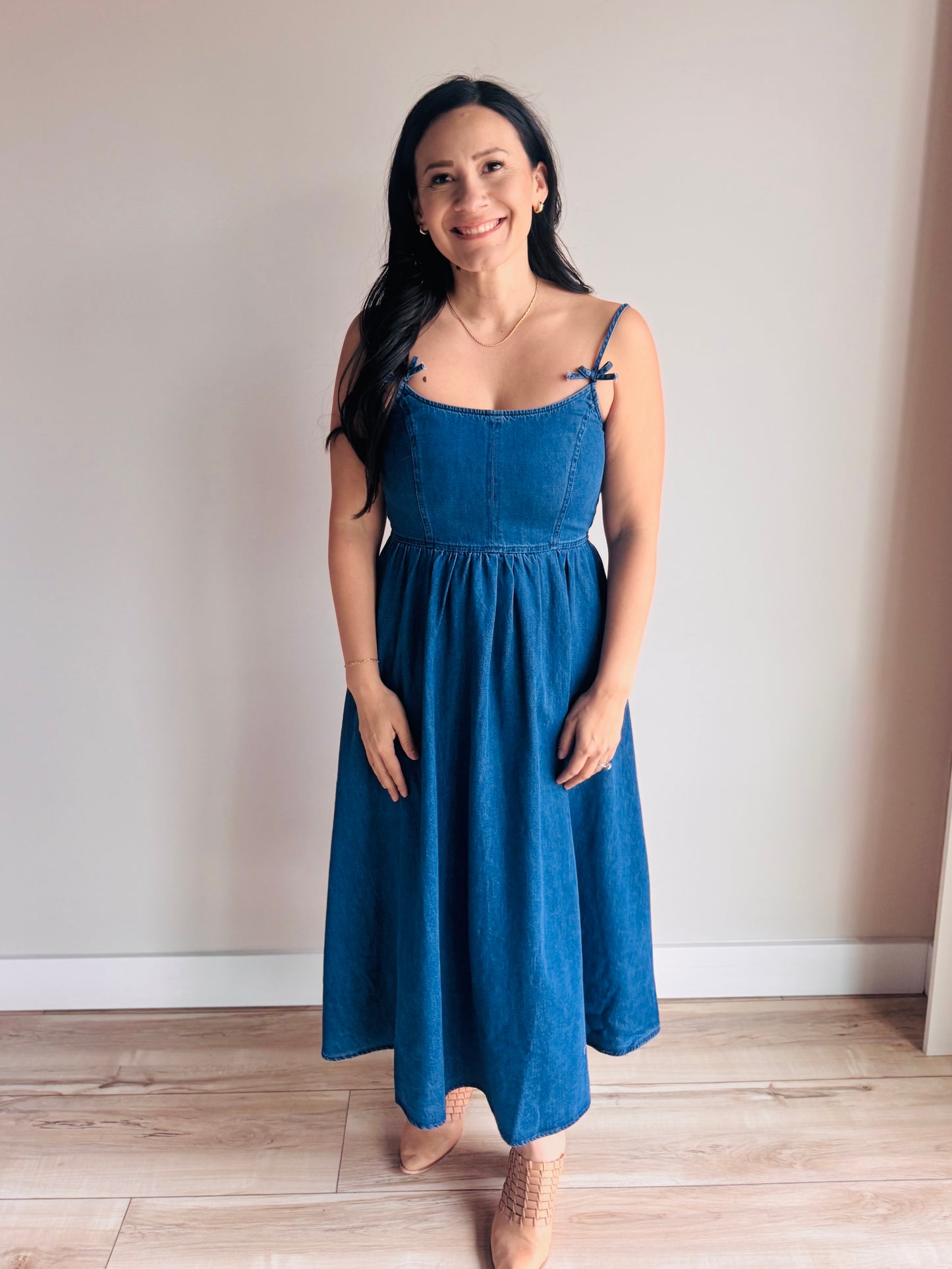 Sophia Spaghetti Strap Denim Dress - 27 West