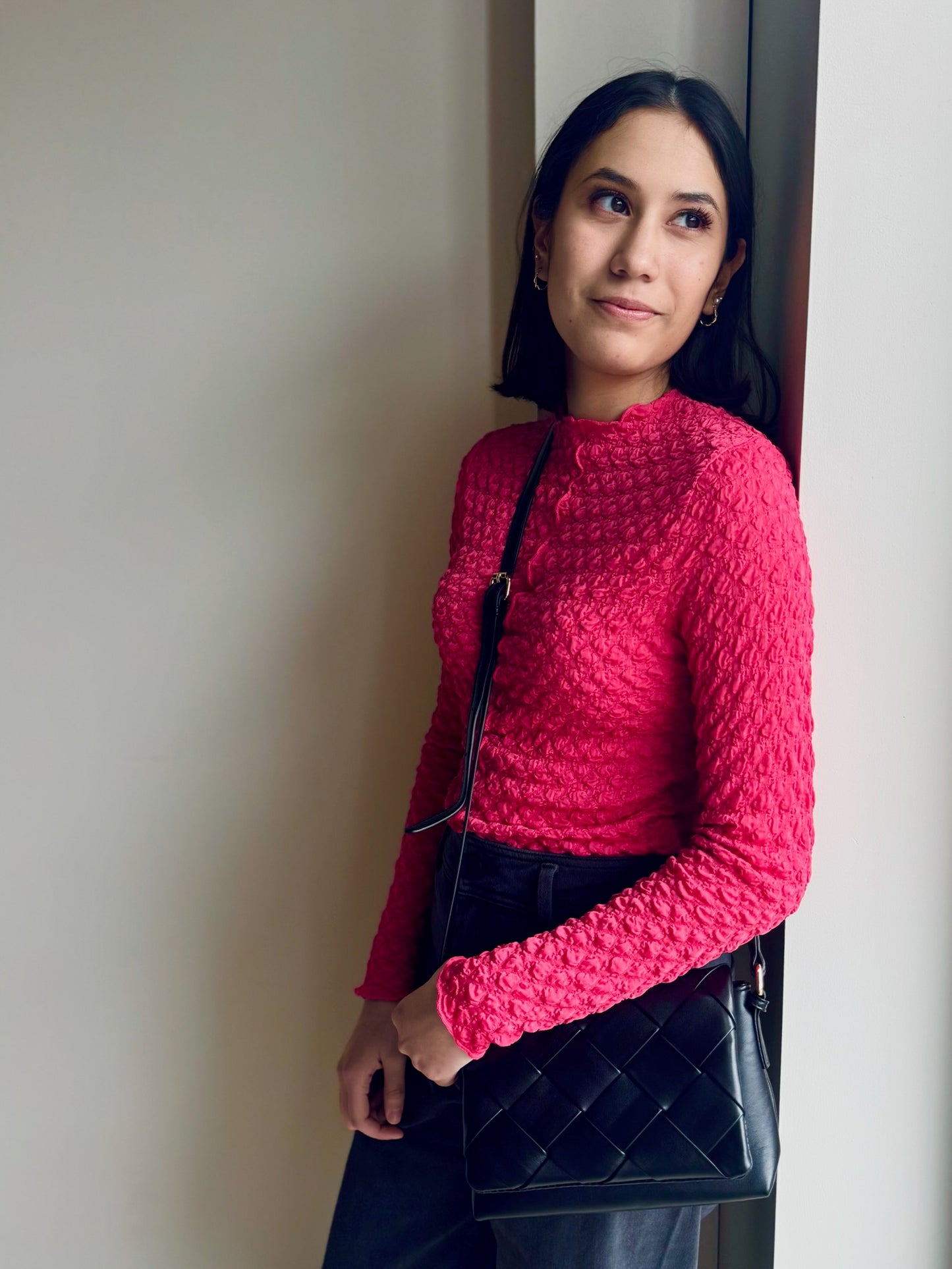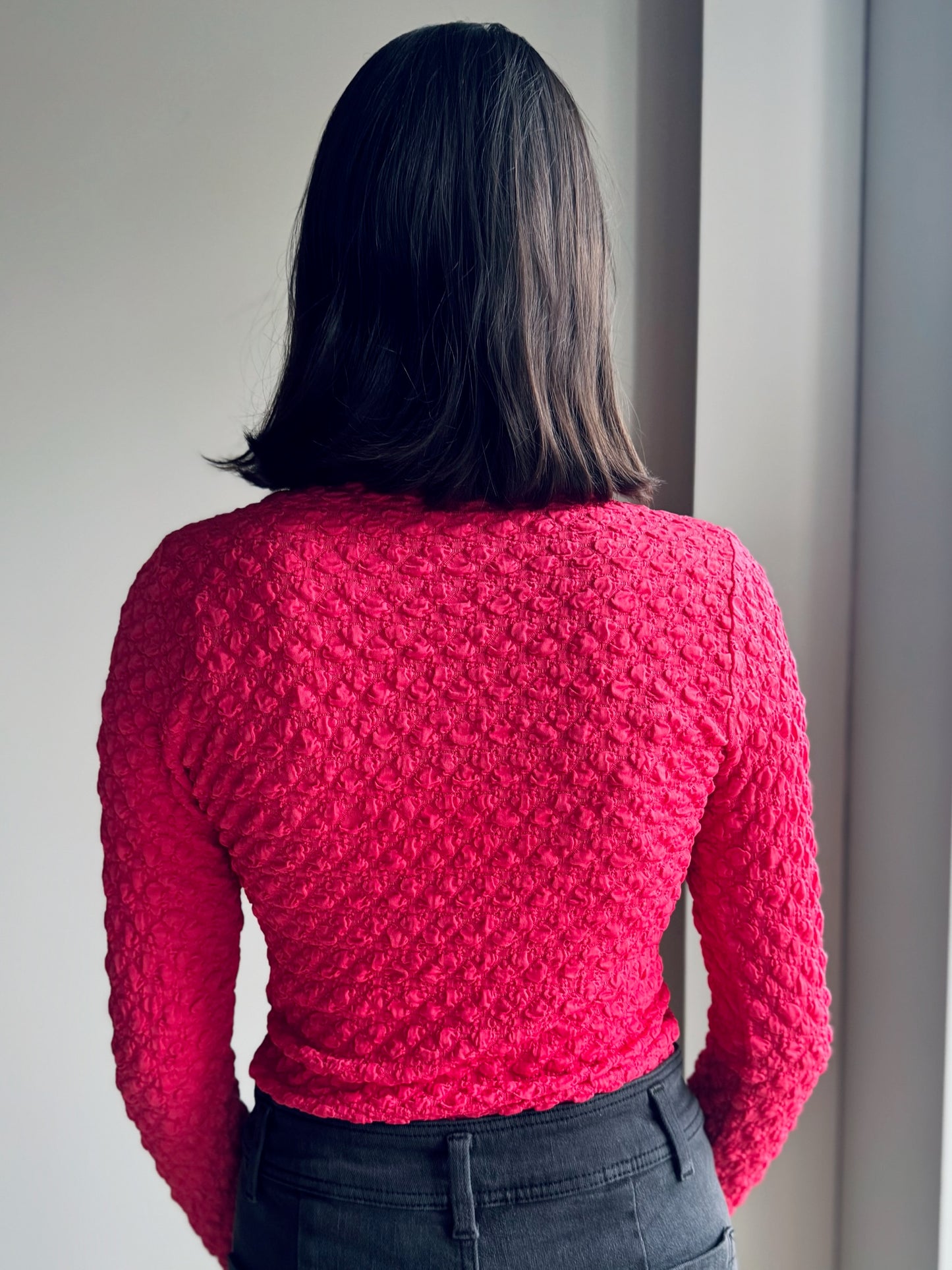 Regular price $17.00Featuring a textured crinkle fabric, high round neckline, and fitted bodice, this trendy top is perfect for any occasion. The exposed seam and rolled hem add unique details, while the semi-cropped length and long fitted sleeves provide a flattering fit.